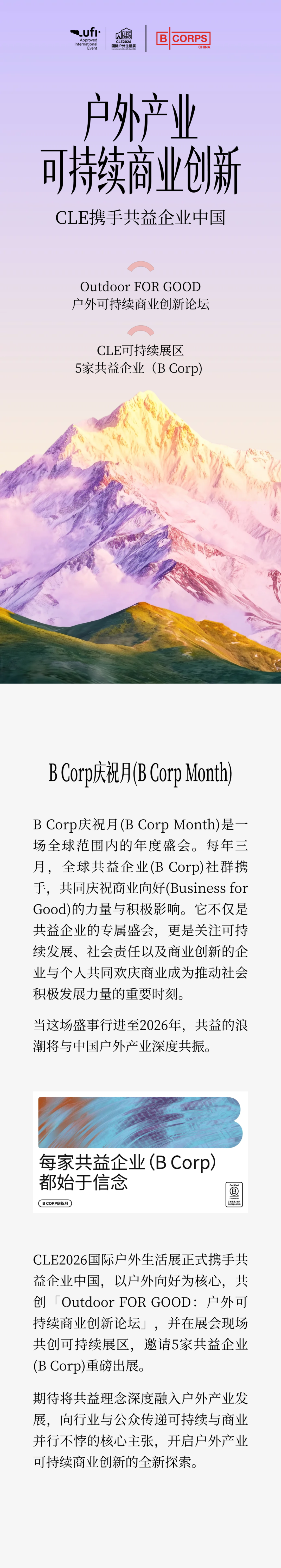 Outdoor FOR GOOD!CLE2026携手共益企业中国,让商业与自然双向奔赴!