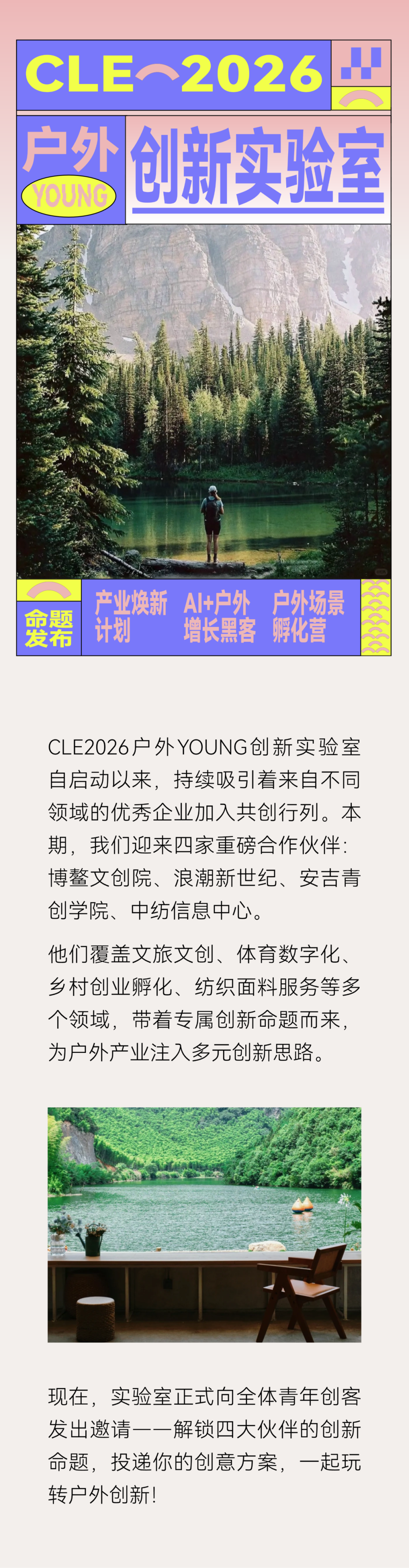 CLE2026户外YOUNG创新实验室四大合作伙伴集结,创新命题正式发布!