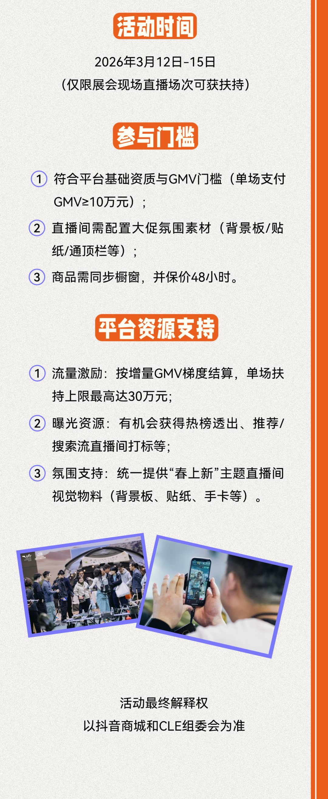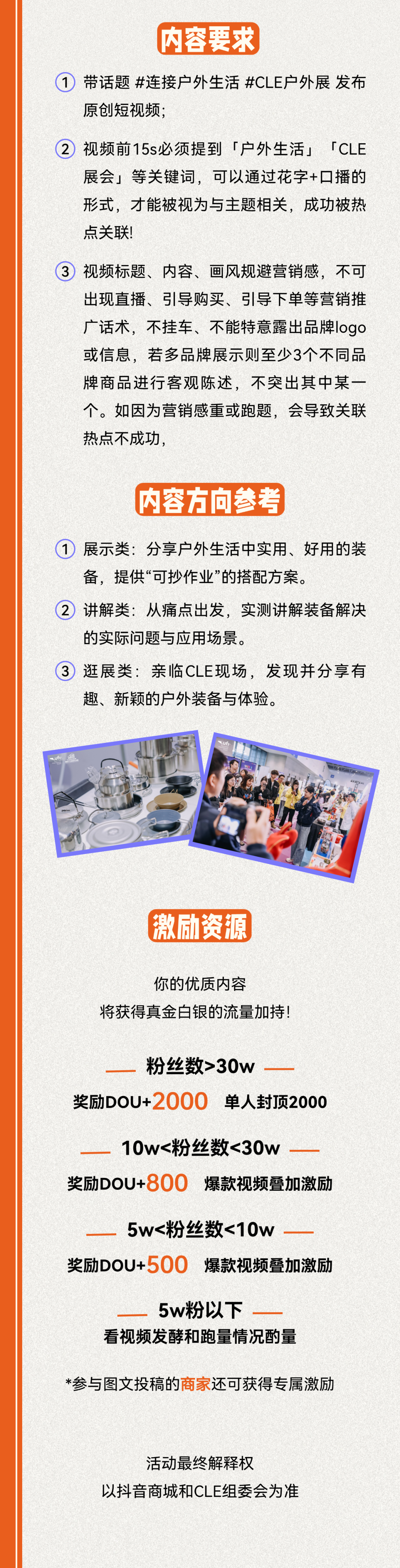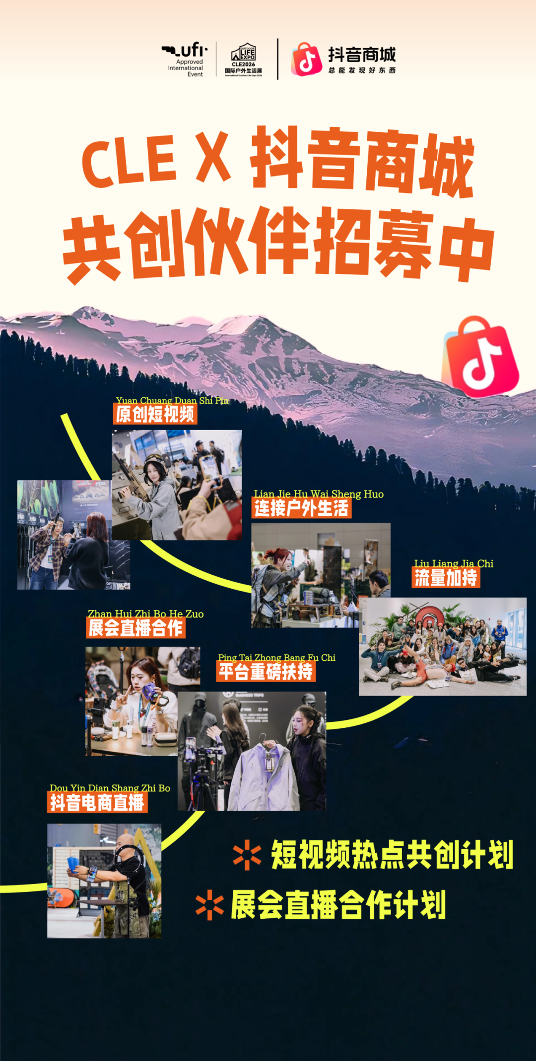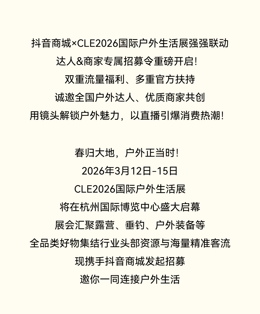 招募!CLE联合抖音商城送流量!短视频+直播带货双重创作流量扶持!